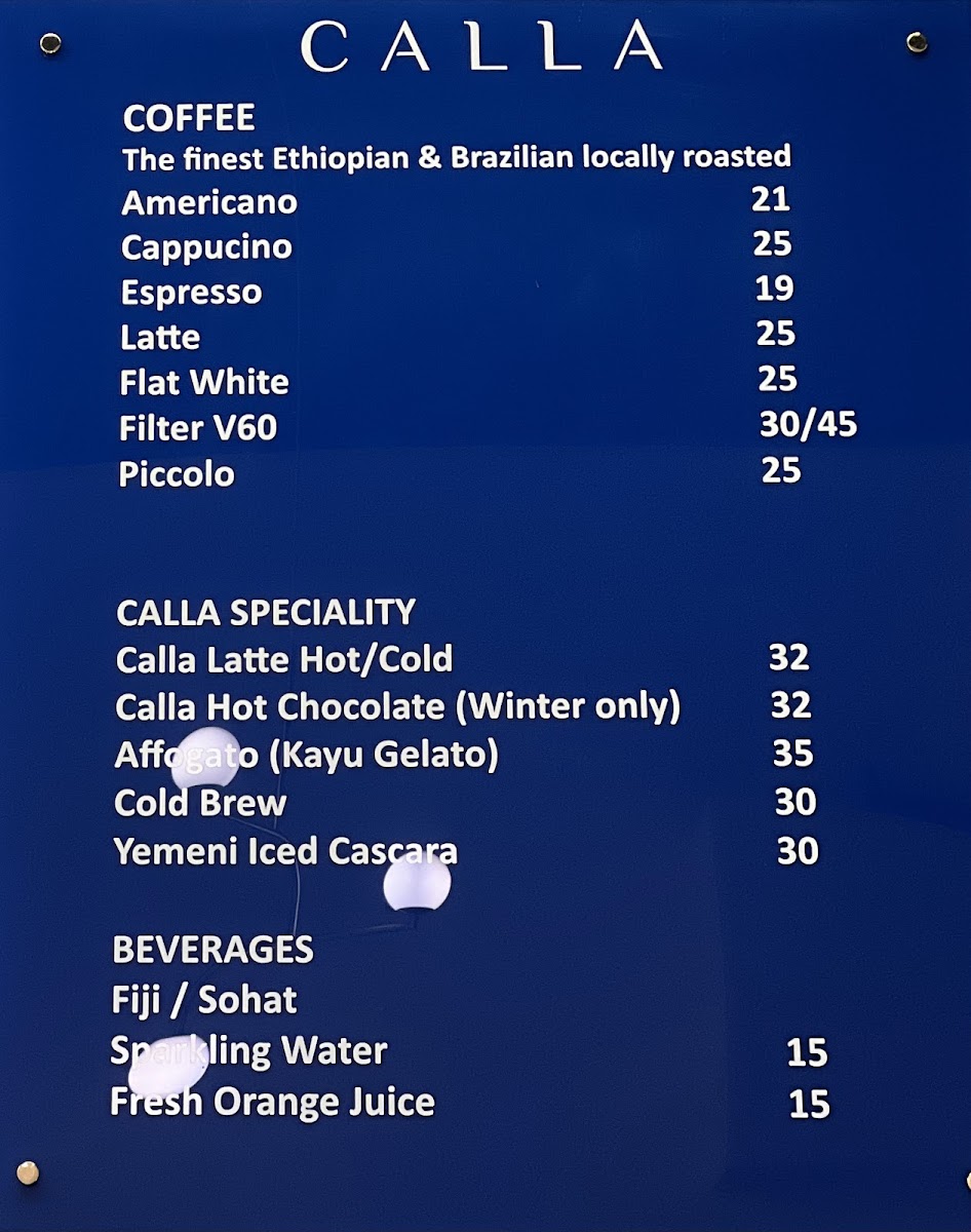 CALLA Cafe Menu